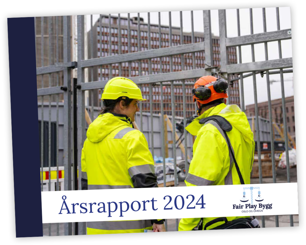 I denne årsrapporten fra Fair Play Bygg kan du lese om arbeidet vårt, om arbeidsfolk i byggebransjen som blir grovt utnytta i et system der arbeidsmiljølov, avtaler og folkeskikk ikke gjelder. Du får høre om organisasjonsfolk som opplever at systemet som regulerer arbeidslivet, «den norske modellen», blir satt ut av spill, og om entreprenører som får en ublid overraskelse når de oppdager at «det billigste tilbudet» ikke var det beste. Men også om offentlege kontrollmyndigheter som må intensivere kontrollen, og finne nye arbeidsmetoder (og samarbeidspartnere) på grunn av omfattende endringer i arbeidslivet.